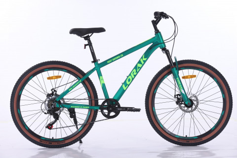 Цвет # Золотисто Серый Материал рамы # алюминий Тип тормозов # дисковый механический Диаметр колес # 27.5 Рама # 17" (на рост 155-173) Вилка # STEEL ход 80 мм, пружинно-эластомерная Количество скоростей # 7 Передний переключатель # - Задний переключатель # LTWOO A2 или Shimano TZ500 (зависит от партии) Передний тормоз # YinXIng или JAK-8 mech. disc 160 механический Задний тормоз # YinXIng или JAK-8 mech. disc 160 механический Манетки # LTWOO A2 триггер Shimano ST-EF-41 (зависит от партии) Шатуны # 1ск. 36Т 170MM алюминий Каретка # FP Feimin картридж Задние звезды # ATA 7 скоростей трещетка Втулки # сталь Shengfu подшипники насыпные или на промах (зависит от партии) Покрышки # Compas 27.5*2.0 Обода # двойной DA-18 Цепь # KMC C050 Руль # Lorak стальной 680W Вынос # Lorak стальной подъемный Подседельный штырь # Lorak 27.2*300MM Рулевая колонка # Neco резьбовая Седло # Lorak 6558 Педали # пластик FP Вес # 15,9 кг